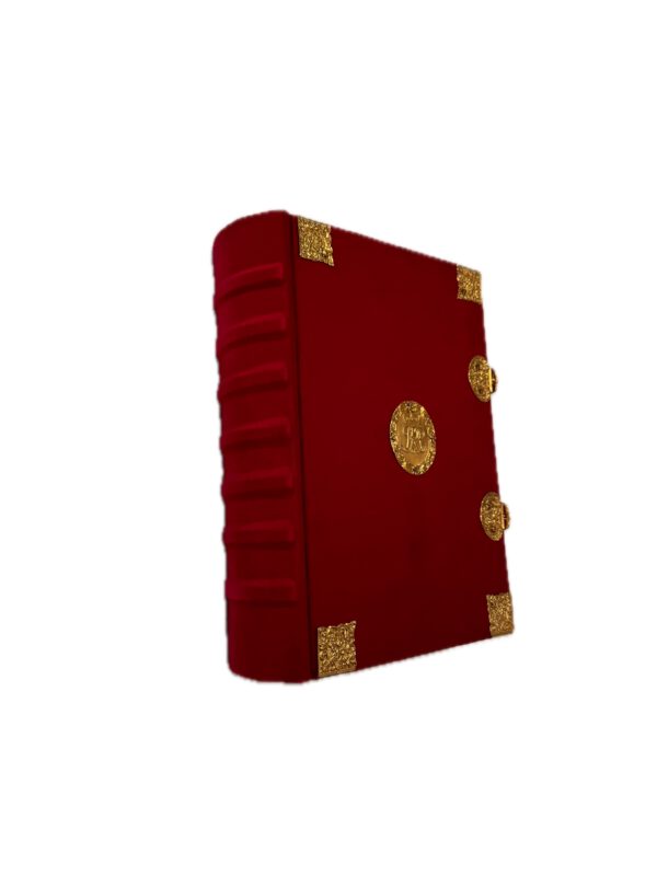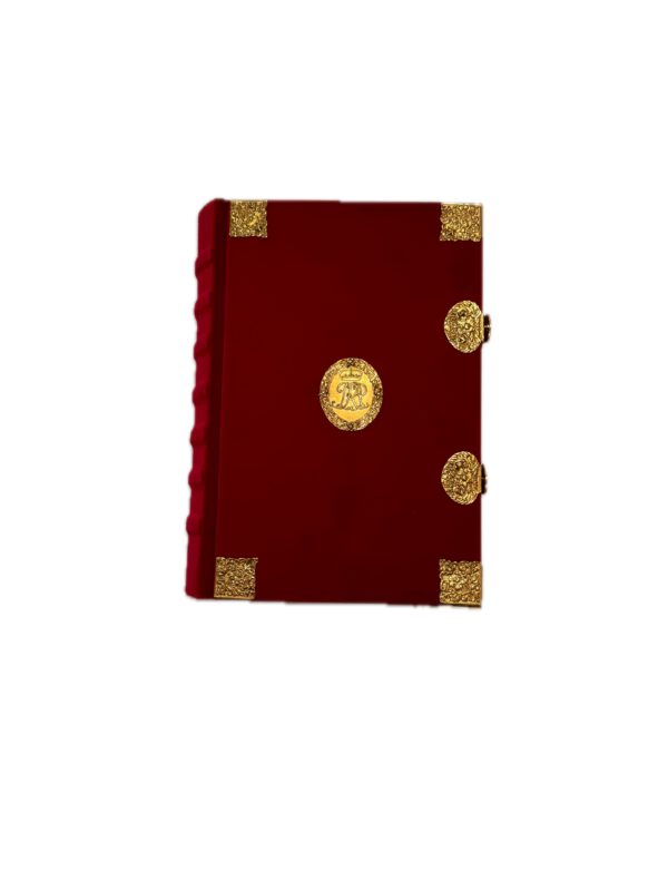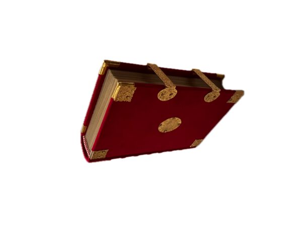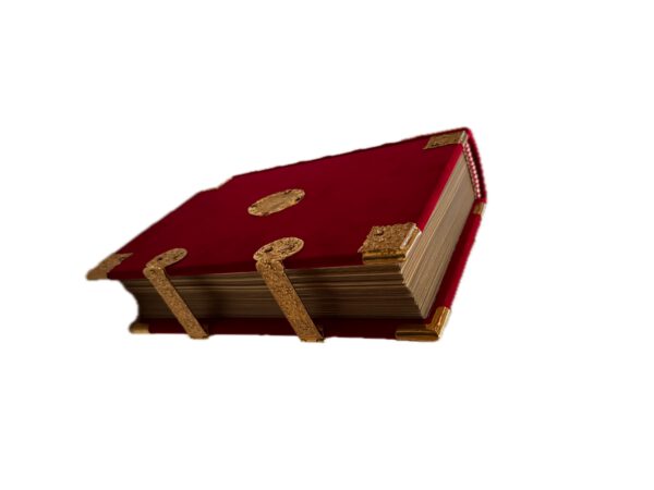 Limitierte Auflage von 680 Exemplaren. Der Einband wurde aus rotem Samt gefertigt und mit 2 Ziermedaillons auf der Vorder- und Rückseite des Buches, sowie 8 Zierecken und 2 Buchschließen aus Gold reich verziert. Inklusive Kommentarband