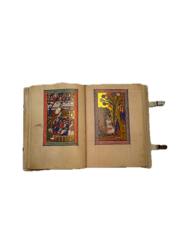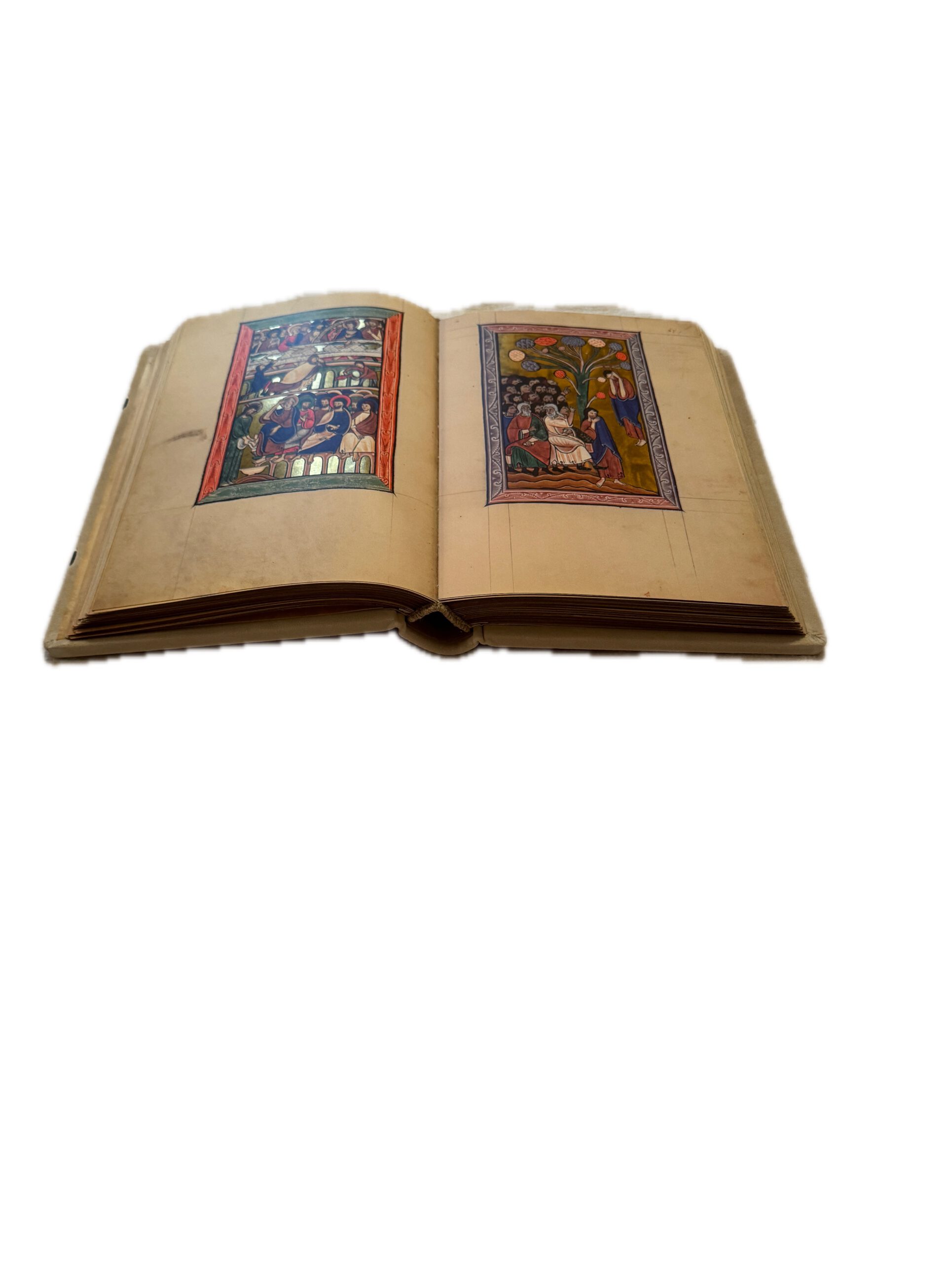 Der Goldene Münchner Psalter verdankt seinen Namen seiner reichen Ausstattung: Unzählige Miniaturen auf goldenem Grund, goldene Schriftzüge, kostbare Initialen und phantasievolle Schmuckelemente machen das opulent gestaltete Werk zu dem kostbarsten und bilderreichsten bekannten Psalter. Er wurde zwischen 1200 und 1210 geschaffen, als Künstler werden drei Meister einer Werkstatt in Oxford genannt. Ein außergewöhnlich schönes Werk auf 332 Seiten
