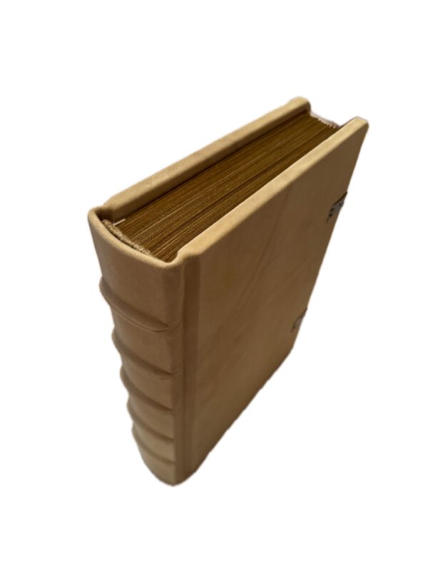 Limitierte Auflage mit 680 Exemplaren. Der Einband in hellem Veloursleder gearbeitet und mit 2 Messingschließen veredelt. Inklusive einem Kommentarband.